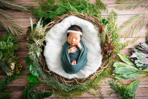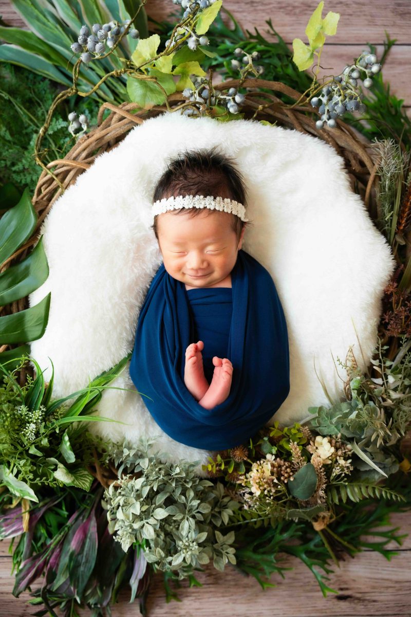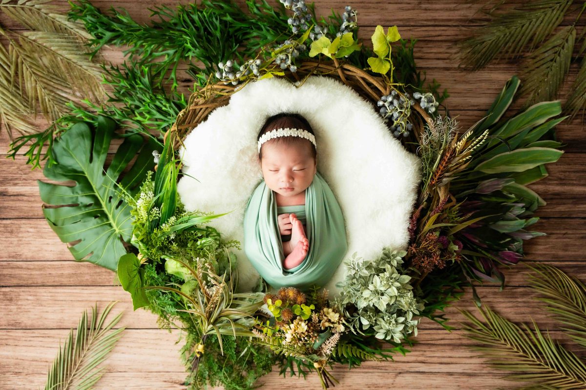 ボタニカルな小物を使ったナチュラルなスタイルで、赤ちゃんの自然な可愛らしさを丁寧に撮影いたします。